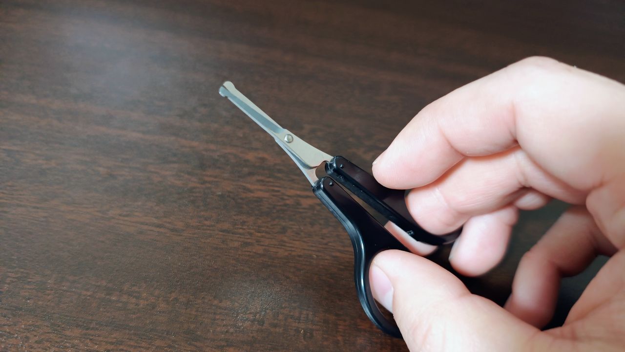 私のように40代後半にもなると、手が乾燥してパッケージが滑ったり、老眼で細かい作業が億劫になったりすることがあります。そんな時、ポケットサイズの切れ味鋭いハサミがあると、出先ではかなり助けにな理想だと思ったのが購入の理由です。