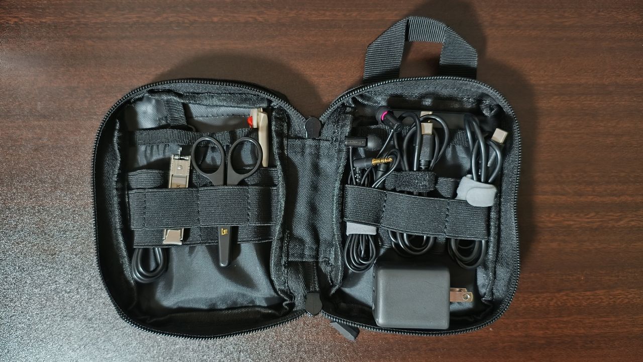 こういった、日常生活で不意に発生する「切る」ニーズは意外と多いものです。私は日頃から「持ち物はできるだけコンパクトに」を意識していて、ガジェットポーチに厳選したアイテムをまとめて持ち歩いています。